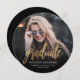 Moderne Rundankündigung mit einem maßgeschneiderten quadratischen Foto. Das Wort "Absolvent" erscheint in goldenen Imitat-Folie Skript, mit dem Namen des Absolventen, Schule und Jahr des Abschlusses unten in weißen Sans Serif Schriftart. Ersetzen Sie das Beispielbild einfach durch das Foto Ihres eigenen Absolventen. Ein Schwarzer Farbverlaufsbildschirm trägt dazu bei, die Pop des Textes zu gewährleisten. Das Gegenteil ist schwarz. Ideal für High School oder Uni-Abschluss.
