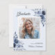Watercolor Navy Blue Blumen Foto Abschluss Danke Karte. Matching-Elemente verfügbar.