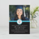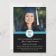 Graduation Party Einladung individuelle Fotokarte in hellblau, schwarz und weiß modernes Design. Passen Sie diese Foto-Karte an, indem Sie das Jahr Ihres Abschlusses, Ihre eigenen Fotos und Ihre Abschlussfeier hinzufügen.