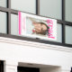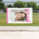 Foto Graduation Party Elegant Modern Script Banner Party Sign Feature Ihr Lieblings-Foto mit dem einfachen rosa Text "Grad (Jahr)" und Ihren Namen und personalisierte Abschluss Details auf der Vorderseite. Perfekt für den Absolvent als Abschluss Geschenk oder Abschlussfeier Dekor. Erstellt von ©Evco Studio www.zazzle.com/store/evcostudio