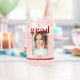 Foto Graduation Party Elegant Modern Script Can Glass Beer Tumbler bietet Ihr Lieblings-Foto mit dem einfachen burgundischen Text "Grad (Jahr)" und Ihren Namen und personalisierte Abschluss Details auf der Vorderseite. Perfekt für den Absolvent als Abschluss Geschenk oder Abschlussfeier Dekor. Erstellt von ©Evco Studio www.zazzle.com/store/evcostudio