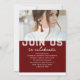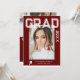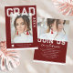 Foto Graduation Party Elegant Modern Script Einladungen zeigen Ihr Lieblings-Foto mit dem weißen Text "Grad (Jahr)" und Ihren Namen und personalisierte Abschluss Details auf der Vorderseite auf einem burgundischen Hintergrund. Auf der Rückseite fügen Sie ein zusätzliches Bild mit Ihren Abschluss Einladung Informationen unten. Personalisieren Sie den Text durch Bearbeiten in den bereitgestellten Textfeldern. Erstellt von ©Evco Studio www.zazzle.com/store/evcostudio