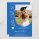 Foto Graduation Party Moderne Elegante Script Einladungen zeigt Ihr Lieblings-Foto mit dem Text "She did It" in eleganter Kalligraphieskripttypografie auf blauem Hintergrund. Fügen Sie unten Ihre Abschluss Einladungsinformationen hinzu. Personalisieren Sie den Text durch Bearbeiten in den bereitgestellten Textfeldern. Senden Sie als sofortiger digitaler Download, als physische Einladung per Post oder beides. Erstellt von ©2025 Evco Studio www.zazzle.com/store/evcostudio