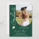 Foto Graduation Party Moderne elegante Skripteinladungen zeigen Ihr Lieblings-Foto mit dem Text "Graduate" in eleganter Kalligraphieskripttypografie auf dunkelgrünem Hintergrund. Fügen Sie unten Ihre Abschluss Einladungsinformationen hinzu. Personalisieren Sie den Text durch Bearbeiten in den bereitgestellten Textfeldern. Senden Sie als sofortiger digitaler Download, als physische Einladung per Post oder beides. Erstellt von ©2025 Evco Studio www.zazzle.com/store/evcostudio