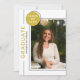 Foto Graduation Party Moderne Script Black Gold Einladungen bieten Ihr Lieblings-Foto mit dem einfachen Text "Graduate" und Ihre Graduate Party Einladung Informationen auf der Rückseite. Personalisieren Sie diese, indem Sie den Text in den bereitgestellten Textfeldern bearbeiten und Ihr bevorzugtes Foto hinzufügen. Erstellt von ©Evco Studio www.zazzle.com/store/evcostudio