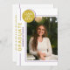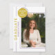 Foto Graduation Party Modernes Script Lila Gold Einladungen bieten Ihr Lieblings-Foto mit dem einfachen Text "Graduate" und Ihrem Namen und personalisierten Abschluss Details. Personalisieren Sie diese, indem Sie den Text in den bereitgestellten Textfeldern bearbeiten und Ihr bevorzugtes Foto hinzufügen. Personalisieren Sie mit Ihren Abschluss Einladung Informationen auf der Rückseite. Erstellt von ©Evco Studio www.zazzle.com/store/evcostudio