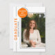 Foto Graduation Party Moderne Script Schwarz Orange Einladungen bieten Ihr Lieblings-Foto mit dem einfachen Text "Graduate" und Ihre Graduate Party Einladung Informationen auf der Rückseite. Personalisieren Sie diese, indem Sie den Text in den bereitgestellten Textfeldern bearbeiten und Ihr bevorzugtes Foto hinzufügen. Erstellt von ©Evco Studio www.zazzle.com/store/evcostudio