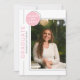 Foto Graduation Party Modernes Skript Pink Gray Einladungen Ihre Lieblings-Foto mit dem einfachen Text "Graduate" und Ihre Graduation Party Einladung Informationen auf der Rückseite. Personalisieren Sie diese, indem Sie den Text in den bereitgestellten Textfeldern bearbeiten und Ihr bevorzugtes Foto hinzufügen. Erstellt von ©Evco Studio www.zazzle.com/store/evcostudio