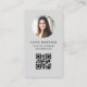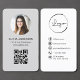 Moderne, minimalistische Visitenkarte mit einer eleganten grauen Farbpalette, einem Foto und einem QR-Code für schnelles und einfaches Teilen von Kontakten. Entwickelt, um Kunden dabei zu helfen, Ihre Details sofort zu speichern, auf Social Media zu verbinden oder Ihr Portfolio anzusehen. Perfekt für Fachleute, Kreative und Kleinunternehmer, die eine saubere und anspruchsvolle Markenpräsenz suchen. Bearbeitbarer Text, Foto und QR-Code-Ziel. Sauberes, druckfertiges Layout.