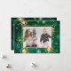 Goldene Schneeflocken auf einem eleganten grünen Hintergrund. Das ist eine saisonale Grußkarte. Fügen Sie Ihre Lieblings-Fotos, um diese Schönheit zu personalisieren. Ändern Sie die Namen und das Jahr. So einfach, aber elegant.