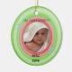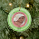Hübsche Farbringe in Grün und Rot heben Ihr eigenes Foto hervor. Auch kleine Schneeflocken! Dieses Design ist für Sie bereit, um mit einem Lieblings-Foto der ersten Weihnachtsfeier Ihres Babys zu personalisieren. Ein ewiger Sake.