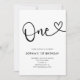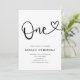 Die Einladung zum 1. Geburtstag beinhaltet moderne Schrift mit Herz.