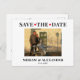 Foto Hochzeit Speichern Sie das Datum Postkarte wird durch szdesign erstellt. Diese Save the Date Postkarte ist eine Mischung aus moderner Einfachheit und kindischem Charme und ist somit die ideale Wahl für Ihre Hochzeit. Der Kinderzauber kommt mit zwei kleinen roten Herzen im Titel.