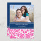 Hochzeitseinladung individuelle Fotovorlagen Karten in elegantem und zeitgenössischem dunkelmarineblau, fuchsisches Hot-Rosa und weißes klassisches und schick florales Damask Vintages Muster. Passen Sie diese Einladungen mit Ihren Hochzeitsdetails und Ihrem eigenen Foto an. Erhältlich in passenden Produkten für alle Ihre Hochzeitsbedürfnisse.
