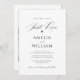 Schwarzes Drehbuch, Nichts extravagant nur Liebe Schwarz-Weiß-Foto Hochzeit einladen. Sie können die Einladung mit Ihren Namen und Ihre Hochzeitsdetails, einschließlich Datum, Uhrzeit und Ort, personalisieren. Sie können auch zwischen verschiedenen Papiertypen und -größen wählen, um sicherzustellen, dass Ihre Einladung auf Ihre Wünsche zugeschnitten ist. QR CODE Hochzeit Einladung.