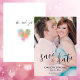 Foto Wedding Save the Date - Bride and Groom Einladung Card entworfen mit dem Foto Ihres Lieblings-Pärchens, und Ankündigungsdetails. Auf der Vorderseite befindet sich das Bild zusammen mit dem Text: Save the Date, die ersten Namen der Braut und des Bräutigams, das Hochzeitdatum und die förmliche Einladung zu folgen. Der umgekehrte Text beinhaltet: Sie sagte ja! auf einem weißen Hintergrund mit zartem Herzakzent. Zum Personalisieren fügen Sie einfach Ihr Bild in unsere einfache Vorlage ein. Klicken Sie auf: FILL, um abzudecken. Fügen Sie anschließend Ihre Textdetails ein, um das Beispiel zu ersetzen. Diese Ankündigung Datum freihalten ist sowohl als Print- als auch als digitaler Download erhältlich.