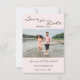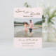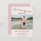 Eine Foto Wedding Save The Date Announcement Card, entworfen mit Bild und Text Ihres Lieblingspärchens: Save the Date, Ihr Hochzeitstag, Namen und weitere Details, mit einem weichen, rosa Hintergrund (vorne). Die Rückseite ist eine hellere Schattierung von rot-rosa Hintergrund. Zum Personalisieren fügen Sie einfach Ihr Bild in unsere einfache Vorlage ein und ersetzen das Beispiel-Foto. Fügen Sie anschließend Ihre Namen und das Hochzeitdatum in die Vorlage ein, um den Beispieltext zu ersetzen. Vergewissern Sie sich, dass Sie die gesamte Hochzeitskollektion im BoHo-Stil in Rosa und Grün sehen.
