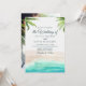Foto Hochzeit von Aquarellstrand und Palmen Einladung