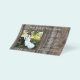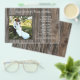 Budget Wedding Einladungen with a rustic wood look design. Add a foto of the paar and customize white text in two places on this very afforable wedding stationery. The names of the bride and groom are printed in script across the top of horizontal invites. All ceremony (and reception) text is added down the right side, next to the foto. Dark brown and gray wood grain background design is on both sides. The square foto template will work for either landscape or porträts, with subjet in the center of the foto.