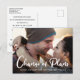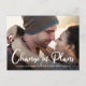Auch wenn die Umstände erfordern, dass Sie Ihre Hochzeit verschieben, zeigen Sie Ihren Gästen Ihre Liebe geht mit Ihrem Lieblings-Verlobung Foto auf dieser Umgestaltung der Pläne Ankündigung Postkarte. "Plänen ändern" ist in großen zeitgenössischen weißen Schriftzeichen über den Grund Ihres Fotos geschrieben, und darunter können Sie Ihre Namen personalisieren und ob Ihre Hochzeit verschoben wurde, Ort geändert, etc. Auf der Rückseite können Sie Ihre Nachricht noch detaillierter personalisieren.