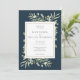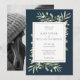 Freuen Sie sich auf delikate Aquarellfarben auf einem stilvollen, tiefblauem Hintergrund. Diese elegante botanische Hochzeitseinladung kann mit Ihrem Foto und besonderen Hochzeitstagsdetails in moderner Typografie personalisiert werden. Entwickelt von Thisisnotme©