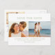 Zwei Fotos und vier Textzeilen auf der Vorderseite lasse Ihnen, Ihre einzigartige Save the Date Postkarte schnell und einfach zu entwerfen. Ein drittes Foto wird auf der Postkarte zusammen mit mehr Text zum Anpassen gelegt.