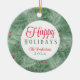 Ein "glücklicher Urlaub" Keramik-Ornament mit einem familiären Foto macht einen großen Vorzug für die Geschenke. Ein schöner Rahmen mit Kiefern und immergrünen Zweigen in Grüntöne und Rot umgibt Ihr Bild. Passen Sie sich mit Ihrem eigenen Foto, Namen und Jahr an. Dies ist die Zeit, um eine Erinnerung zu teilen!