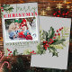 Foto Holly Pine Red Berries Graue Weihnachtskarte Einladung