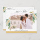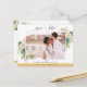 Ankündigen Sie Ihr Hochzeitstag mit diesem eleganten Foto Hochzeit speichern Sie das Datum Postkarte! Attraktives Foto mit zartem Aquarell und Blume Details, die Ihr Bild zeigen. Moderne handgeschriebene Kalligrafiedetails sowohl hinten als auch vorne. Eukalyptus- und Blume-Details vorne und hinten in weiß, goldgelb, honiggelb und grün. Der rechteckige, honiggelbe Streifen am unteren Rand (durch die Auswahl der Anpassung können Sie die Farbe ändern, wenn Sie möchten). Auf der Rückseite finden Sie alle Einzelheiten und Namen der Hochzeit, sowie den Bereich für die Hochzeitswebsite oder die Nachricht für Ihre Gäste (z.B. "Kann es nicht warten, Sie dort zu sehen!).