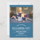 Eine Einladung zum Aufwärmen von Häusern mit anpassbarem Text. Das Foto ist eine Vorlage und soll für Sie ausgetauscht werden. Die Einladung hat einen blauen Hintergrund, einen weißen Text und ein Muster aus weißen Konturen auf der Rückseite. <i>Fotografie © Storytree Studios, Stanford, CA</i>