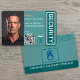 Individuelle Vorlage für das aquamarine Foto-ID-Abzeichen für Sicherheitsbeamte, Veranstaltungspersonal und Mitarbeiter des Unternehmens. Enthält Platz für Foto, Name, ID-Nummer, Ablaufdatum, QR-Code und Firmenlogo. Feines aquamarines Hintergrundbild mit modernem Sicherheitsfenster für ein berufliches und vertrauenswürdiges Aussehen.