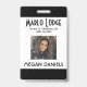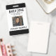 Passen Sie die Foto-ID-Abzeichen Ihres Mitarbeiters an. Alle Details können modifiziert oder entfernt werden. Foto, Name, Firma, Abteilung/Abteilung/Titel. Schwarzer Text auf weißem Hintergrund mit schwarzen Rändern oben und unten vor dem Abzeichen. Jedes Detail kann individuell angepasst werden, einschließlich Farben und Schriftartes. Weitere Informationen zur Rückseite des Abzeichens finden Sie bei Bedarf. Wenn nicht, kann gelöscht werden.
