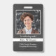 Ein freundliches Foto-ID-Abzeichen für den Unterricht, damit die Schüler ihren phantastischen Lehrer ohne Maske lächeln sehen können. Benutzerdefinierte Vorlagen für Lehrername, Klasse, Schule, enthält auch personalisierte Bildvorlagen, sodass Sie leicht Ihr eigenes Foto hinzufügen können. Die Rückseite hat Platz für eine Adresse, Telefonnummer und E-Mail-Adresse. Chalkboard Hintergrund auf diesem Foto Namensschild für Lehrer.