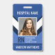 Personalisieren Sie dieses berufliche Abzeichen für medizinisches Personal mit einem Mitarbeiter-Foto, Name, Krankenhaus- oder Gesundheitseinrichtung, Abkürzung, Mitarbeiternummer. Passen Sie ihn mit einem Strichcode auf der Rückseite zusammen mit Rückgabeinformationen an, falls erforderlich.