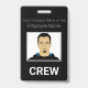 Dieses individuelle Foto Identification Abzeichen verfügt über ein Musterfoto in der Mitte. Der Titel "CREW" wird unten in fett weißem Schriftart auf schwarzem Hintergrund gedruckt, um die Person als Crew für Ihre Veranstaltung zu bezeichnen. Sie können Ihren Firmennamen oder zusätzlichen Text über dem Bild sowie einen Mitarbeiternamen angeben. Auf der Rückseite des Abzeichens befinden sich zusätzliche Mitarbeiter- oder Firmeninformationen, die auf einem schwarzen Hintergrund gedruckt werden, wobei ein Strichcode unten platziert wird. Sie können den Scan-Code durch ein eigenes oder ein anderes Bild ersetzen, z. B. ein benutzerdefiniertes Logo.