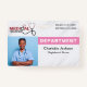 Berufliches Foto-ID-Abzeichen, das auf das medizinische Fachpersonal zugeschnitten ist. Passen Sie Ihren Namen, Ihre Jobbezeichnung, Ihre Abteilung, Ihr Foto, Ihre ID-Nummer, Ihr Krankenhauslogo und Ihren Strichcode an. Zurück beinhaltet die Kontakt- und Rückgabedaten. Ideal für Krankenschwestern, Mitarbeiter und medizinische Fachkräfte in Krankenhäusern und Kliniken.