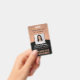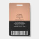 **Bitte beachten Sie, dass der Hintergrund so gedruckt ist, dass er metallisch aussieht, das Produkt jedoch nicht aus Metall und nicht aus Folie ist.** Repräsentieren Sie Ihr Unternehmen stilvoll, indem Sie den Mitarbeitern moderne und berufliche Identifizierungssysteme anbieten. Das Logo, das Foto, der Bar und alle Formulierungen auf dieser Vorlage sind einfach zu verändern. Das Design ist mit einem Imitat aus metallischem Kupfer-Hintergrund mit einem eleganten schwarz gebogenen Lichtbogen, Ihrem Firmenlogo, einem quadratischen Bild, Mitarbeitername und Titel sowie UPC/Strichcode auf der Rückseite ausgestattet. Es bietet die Organisation und Sicherheit für die Mitarbeiter des Unternehmens und präsentiert das Corporate Branding mit einem stilvollen klassischen Aussehen. Bitte beachten Sie, dass Kupfer farbig gedruckt ist, nicht metallisch.