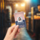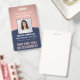 **Bitte beachten Sie, dass der Hintergrund so gedruckt ist, dass er metallisch aussieht, das Produkt jedoch nicht aus Metall und nicht aus Folie ist.** Repräsentieren Sie Ihr Unternehmen stilvoll, indem Sie den Mitarbeitern moderne und berufliche Identifizierungssysteme anbieten. Das Logo, das Foto, der Bar und alle Formulierungen auf dieser Vorlage sind einfach zu verändern. Das marineblau-rosa Design verfügt über einen goldenen Hintergrund aus Imitaten mit einem eleganten Bogen, Ihr Firmenlogo, ein quadratisches Bild, Mitarbeitername und -titel und UPC/Strichcode auf der Rückseite. Es bietet die Organisation und Sicherheit für die Mitarbeiter des Unternehmens und präsentiert das Corporate Branding mit einem stilvollen klassischen Aussehen. Bitte beachten Sie, dass Rose Gold in Druckfarbe ist, nicht in Metallic.