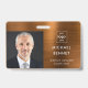 Maßgeschneidertes modernes Metallic Brown Company Foto ID Abzeichen. Personalisieren Sie dieses Corporate ID Card Abzeichen mit dem Namen, der Position, dem Foto und dem Firmenlogo auf der Vorderseite und dem eigenen Info-Text auf der Rückseite. Das Foto der Mitarbeiter funktioniert am besten in quadratischer Form. Ihr Logo funktioniert am besten als png quadratisches Format mit transparentem Hintergrund. Das Platzhalterlogo, das Sie auf dem Abzeichen sehen, wird durch Ihr eigenes Logo ersetzt.
