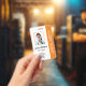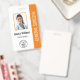 Dieses berufliche Foto-ID Orange-Abzeichen für Krankenhauangestellte wird einfach mit Ihren individuellen Daten personalisiert.