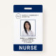 Medizinisches Foto ID Abzeichen in vertikaler Anordnung. Dieses berufliche Design zeichnet sich durch einen marineblau-blauen Rand oben und unten mit weißer Mitte aus. Die Vorlage ist personalisiert mit Ihrem Logo, Krankenhausname, Mitarbeitername, Titel, Abteilung / Standort und Mitarbeiter-ID. Der untere Rand hat "NURSE" in großen fett formatierten Buchstaben und kann in beliebig viele Titel geändert werden. Die Rückseite hat Ihre Kontaktdaten und Anweisungen für die Rückgabe, falls gefunden. Dieses klassische Design ist perfekt für eine lizenzierte Krankenschwester, eine Krankenschwester für Reisen und viele andere medizinische Mitarbeiter.
