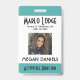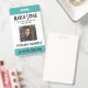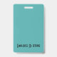 Passen Sie die Foto-ID-Abzeichen Ihres Mitarbeiters an. Alle Details können modifiziert oder entfernt werden. Foto, Name, Firma, Abteilung/Abteilung/Titel. Schwarzer Text auf weißem Hintergrund mit aquamarinen Rändern oben und unten. Jedes Detail kann individuell angepasst werden, einschließlich Farben und Schriftartes. Weitere Informationen zur Rückseite des Abzeichens finden Sie bei Bedarf. Wenn nicht, kann gelöscht werden. IN OFFICE->GESCHÄFTSKARTEN VERFÜGBARE GESCHÄFTSKARTE