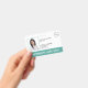 Medizinisches Foto ID Abzeichen in horizontaler Anordnung. Dieses einfache und berufliche Design zeigt Ihre Abteilung / Position in großen, fetten Buchstaben über eine aquamarine grüne Grenze am unteren Rand. Die Vorlage ist mit Ihrem Logo, Krankenhausname, Mitarbeitername, Titel, Mitarbeiter-ID und Ablaufdatum personalisiert. Die Rückseite hat Ihre Kontaktdaten und Anweisungen für die Rückgabe, falls gefunden. Dieses klassische Design ist perfekt für einen Krankenpfleger NP, medizinisch-chirurgische Krankenschwester und viele andere medizinische Mitarbeiter.