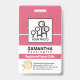 Oben befindet sich eine Fotovorlage zum Platzieren von Fotos (1.000 x 1.000 Pix). Ihr Name ist in einer weißen Spalte unterhalb des Fotos untergebracht. Zur besseren Identifizierung wird Ihr Name in zwei verschiedene Schriftart aufgeteilt. Sie können auch die Möglichkeit in Betracht ziehen, zwei Farben zu haben, um Ihren Namen noch besser zu machen. In der entsprechenden dunkelrosa Streifen Spalte unten liegt Ihr Job Titel. An der Basis des Abzeichens befindet sich ein optionales ichthus-Fischlogo mit dem Organisationsnamen und den Kontaktdaten.