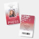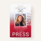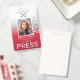 Moderne, farbige, hellgraue und weiße Farbkombination : Vertikales ID-Abzeichen, nach Maß: Foto, Mitarbeitername, Firmenname, Firmenlogo, Jobtitel, ID, Benennung, Bar-Code und alle weiteren Informationen. Es ist einfach, alle grafischen Elemente und Texte zu personalisieren und anzupassen. Auf der Rückseite ist die benutzerdefinierte Rücksendeadresse. Perfekte Wahl für Presse, Journalisten, Zeitungen und viele andere.