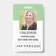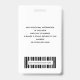 Personalisieren Sie diese vertikalen Mitarbeiter-ID-Abzeichen mit einem Mitarbeiter-Foto und -Namen, zusammen mit mehreren benutzerdefinierten Textfeldern und dem Hinzufügen Ihres Logos. Der Titel oder die Rolle erscheint ganz unten in fett gedruckter schwarzer Schrift, um leicht zu erkennen. Passen Sie Ihren Barcode an und geben Sie Informationen oder andere Details auf der Rückseite zurück.