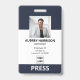 Einfaches und modernes Abzeichen von Pressereferenten mit Foto.