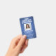**Bitte beachten Sie, dass der Hintergrund so gedruckt ist, dass er metallisch aussieht, das Produkt jedoch nicht aus Metall besteht.** Repräsentieren Sie Ihr Unternehmen stilvoll, indem Sie den Mitarbeitern moderne und berufliche Identifizierungssysteme anbieten. Das Logo, das Foto, der Bar und alle Formulierungen auf dieser Vorlage sind einfach zu verändern. Das blau-weiße Design verfügt über ein Imitat metallisch gebürsteter Hintergrund mit einem eleganten Bogen, Ihr Firmenlogo, ein quadratisches Bild, Mitarbeitername und Titel, und UPC / Strichcode auf der Rückseite. Es bietet die Organisation und Sicherheit für die Mitarbeiter des Unternehmens und präsentiert das Corporate Branding mit einem stilvollen klassischen Aussehen. Bitte beachten Sie, dass der Hintergrund ein gedrucktes Muster ist, nicht eine metallische Folie.