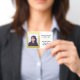 Mit diesem Imitat Gold-Folie für Mitarbeiter-ID-Abzeichen lasse du anderen sofort, deine Mitarbeiter oder Mitarbeiter in Deiner Einrichtung zu erkennen. Geben Sie Informationen wie den Namen der Einrichtung, den Namen des Mitarbeiters, den Titel und die ID-Nummer, Kontaktinformationen, Logo usw. ein. Auch in vertikaler Konfiguration verfügbar.