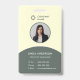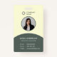 Dieses moderne Mitarbeiter-ID-Abzeichen zeichnet sich durch ein elegantes Farbblockdesign in einer frischen Kombination aus gedämpftem Grün und Hellgelb mit weißen Highlights aus. Das Design zeigt den Mitarbeiternamen in fett gedruckten Buchstaben, das Foto des Mitarbeiters in einem speziellen, in kleinen Graurahmen eingebetteten Kreis-Platzhalter und den Mitarbeitertitel/-platz. Das Identifizierungszeichen-Abzeichen bietet eine Option für das Firmenlogo und den Firmennamen oben. Andere persönliche Informationen wie ID, Telefon und E-Mail können am unteren Rand eingegeben werden. Auf der Rückseite können weitere wichtige Informationen zum Mitarbeiter angegeben werden. Das Design zeigt ein neuartiges Design mit eleganten Kurven und Farben. Sie können auch zusätzlichen Text auf der Rückseite der Karte für die Firmen-Tag-Zeile oder Slogan hinzufügen. Die ID-Karte ist auch in mehreren Farbkombinationen erhältlich.